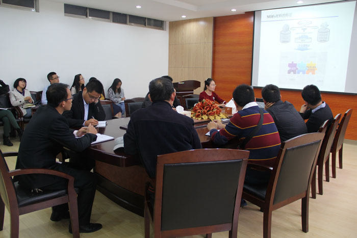 2014年10月23日下午3:00,我室学术沙龙第二讲《金属-有机纳米多孔材料的设计及其在催化领域的应用》在知达楼二楼研讨室顺利举行。此次沙龙的主讲人为我室杨秀丽博士,她主要从事新型功能MOFs材料的设计合成及应用研究,在国际顶尖化学期刊J. Am. Chem. Soc.以及Chem. Eur. J.,Inorg. Chem.,CrystEngComm等知名期刊发表学术论文10多篇,总计影响因子60.51,单篇最高影响因子11.444,单篇论文发表两年已被引用72次。